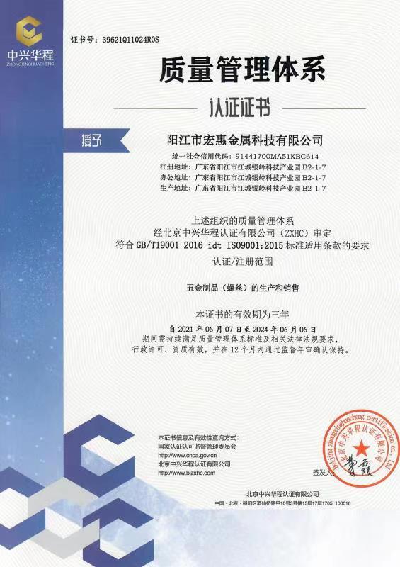 廣東宏惠金屬公司是家20多年一直專注鉆尾螺絲開發(fā)與生產(chǎn)的企業(yè),是國(guó)內(nèi)較早做鉆尾的廠家之一,同時(shí)也是國(guó)內(nèi)專業(yè)開發(fā)生產(chǎn)鉆尾螺絲的企業(yè)之一。 我司地址為于廣東省陽江市江銀嶺科技園距沈海高速白沙出口不到2公里,距陽江高鐵站也只有十余公里交通便利。 公司占地120畝,擁有超500臺(tái)套專業(yè)設(shè)計(jì) 生產(chǎn) 檢測(cè)設(shè)備。一個(gè)超200人的專業(yè)團(tuán)隊(duì),能夠嚴(yán)格按照ISO9001質(zhì)量體系要求生產(chǎn)符合GB DIN AS3566 ANSI JIS BS等標(biāo)準(zhǔn)的產(chǎn)品,生產(chǎn)銷售各種高品質(zhì)緊固件系列產(chǎn)品,為中高端客戶提供優(yōu)質(zhì)服務(wù)。也可按照客戶要求設(shè)計(jì)生產(chǎn)各種鉆尾,年產(chǎn)高品質(zhì)碳鋼 不銹鋼鉆尾螺絲2萬余噸.在各大客戶的鼎力支持下產(chǎn)品暢銷全國(guó),并遠(yuǎn)銷亞 非 拉 歐等地,在這20多年發(fā)展的道路上我司堅(jiān)持“以質(zhì)量求生存,以信譽(yù)求發(fā)展”的精神理念不斷完善公司體系。
